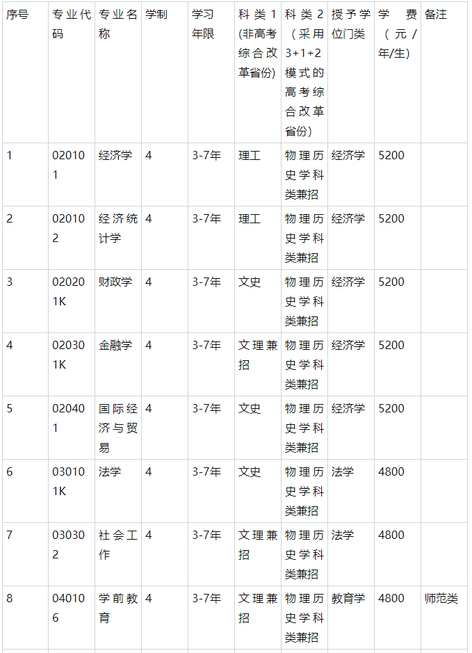 备注:1.学费标准若有变化,以省教育厅备案为准。